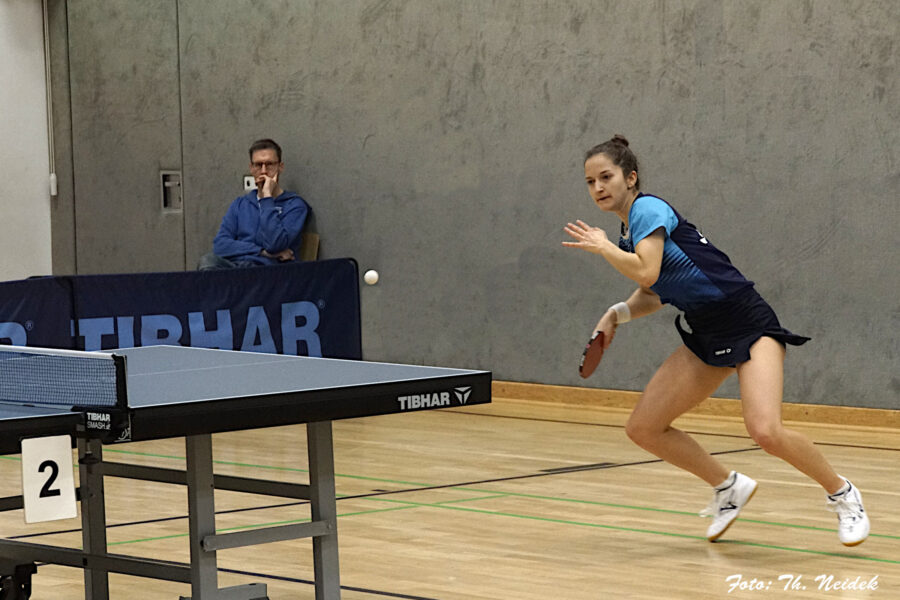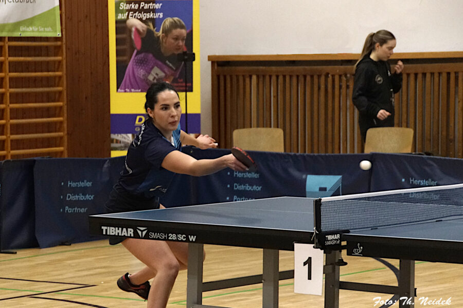 Dort geriet Yi-Ching Chu zunächst ins Hintertreffen: Der Neuzugang aus Taiwan verlor gegen die belgische Nationalspielerin Julie Van Hauwaert im fünften Satz. Am Nebentisch glich aber Iryna Motsyk aus. Gegen die schwedische WM-Teilnehmerin Matilda Hansson setzte sie sich nach engem Verlauf in vier Sätzen durch. Den entscheidenden Unterschied machte an diesem Abend Olena Nalisnikovska. In der Vorrunde gegen Engelbostel-Schulenburg noch ohne Sieg, gewann sie diesmal beide Einzel. Zunächst bezwang sie Laura Milos in vier Sätzen, später holte sie auch den Schlusspunkt: Im letzten für die Wertung relevanten Match gewann Nalisnikovska gegen die Ukrainerin Veronika Hud, die mit einer starken 12:1-Bilanz angereist war, mit 3:1 – damit stand der 6:3-Heimsieg fest.