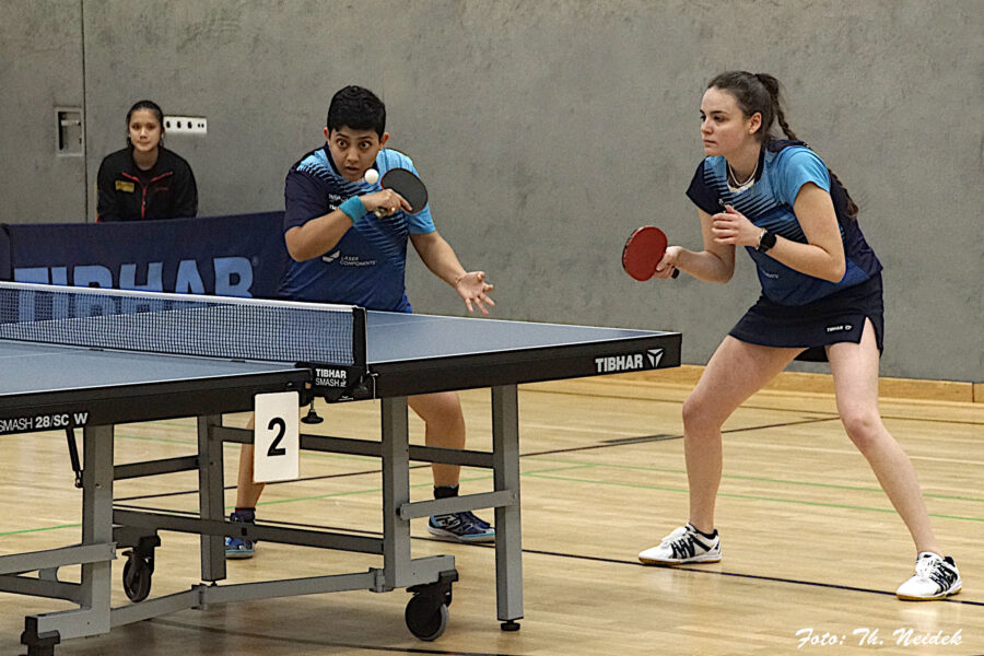 Solchermaßen verunsichert ging man am Sonntag an die dritte Aufgabe heran, die gegen den Tabellendritten SU Neckarsulm auch alles andere als einfach war. Wieder konnten Das/Burandt und erneut Priyadarshini Das ein 2:2 zur Pause erzwingen, dann aber gingen am zweiten Paarkreuz beide Partien verloren und nach drei hauchdünn verlorenen Sätzen von Felbermeier schien die Partie beim Stand von 2:5 verloren. Doch unser Team steckte nicht auf, Das schraubte ihre Bilanz in den Spitzeneinzeln nach 0:2-Satzzrückstand doch noch auf großartige 18:2-Siege und Anna Walter gewann ebenso wie Milena Burandt ihr Schlusseinzel zum nicht erwarteten 5:5-Endstand.