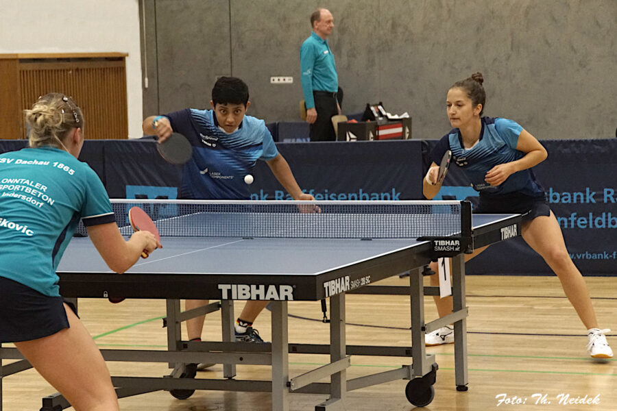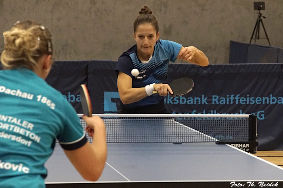 Also ging es in den Spitzeneinzeln nur um die Höhe unserer Niederlage. Ausgerechnet das Spitzenpaarkreuz ist jedoch die Stärke der Dachauerinnen, denn der hochkarätige Kader des Erstligisten Dachau ermöglicht auch in der zweiten Mannschaft den Einsatz so starker Spielerinnen wie der Holländerin Emine Ernst und der national in der Bundesliga und international im Jugendbereich erfahrenen Naomi Pranjkovic. Beide waren für die trotz ihrer beiden Niederlagen erneut spielerisch starke Janine Hanslick zu stark.