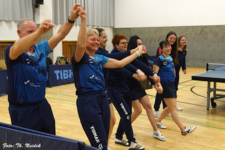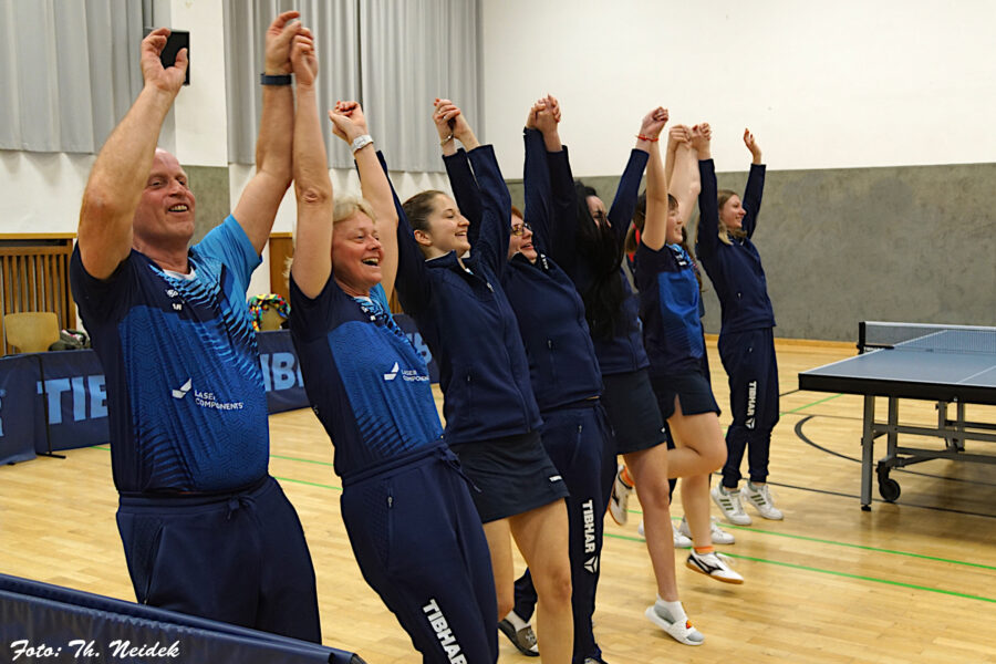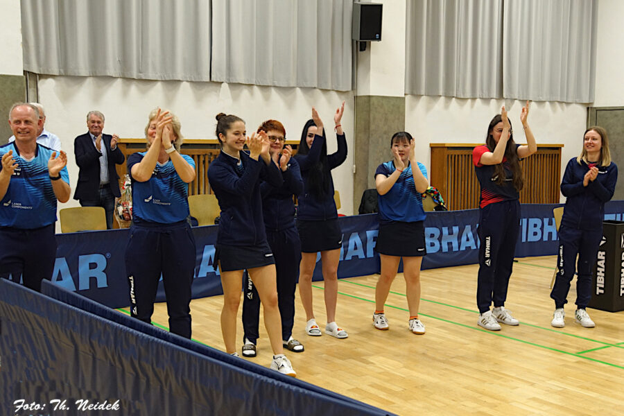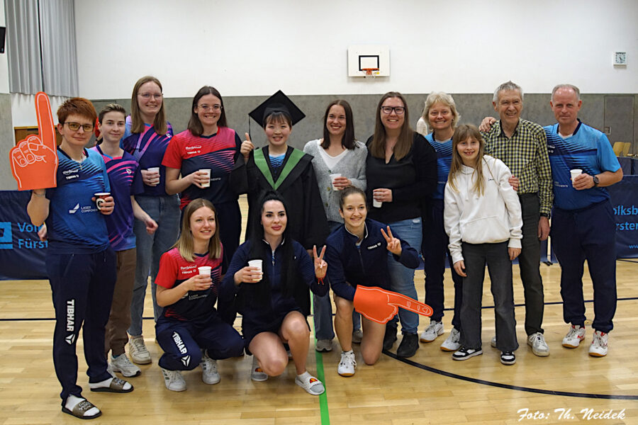 Nach dem letzten Spiel zum 6:2 gegen TTC Langweid gab es eine Abschlussfeier mit dem fast kompletten Damenkader in der Jahnhalle mit den Zuschauern, die anschließend in Bergkirchen im Kartpalast fortgesetzt wurde.